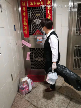 在疫情爆發(fā)之后,她們及其他五位樓長一直堅守在防疫第一線。她們每天張貼疫情海報、給業(yè)戶分發(fā)宣傳單頁;每天監(jiān)管清潔工定時多次對電梯、大堂、地下車庫、候梯廳、走廊、兒童娛樂設(shè)施等公共區(qū)域進行全面清潔和消殺;每天對垃圾分類投放點、垃圾房等重要區(qū)域全面消毒、增加消毒消殺頻次,每次消毒完畢后嚴格做好記錄,守護業(yè)主的生命健康安全;每天不間斷的給隔離業(yè)戶送菜、生活用品、快遞,收垃圾,一包又一包,一趟又一趟,她們用實際行動體現(xiàn)了物業(yè)人的堅毅和果斷。